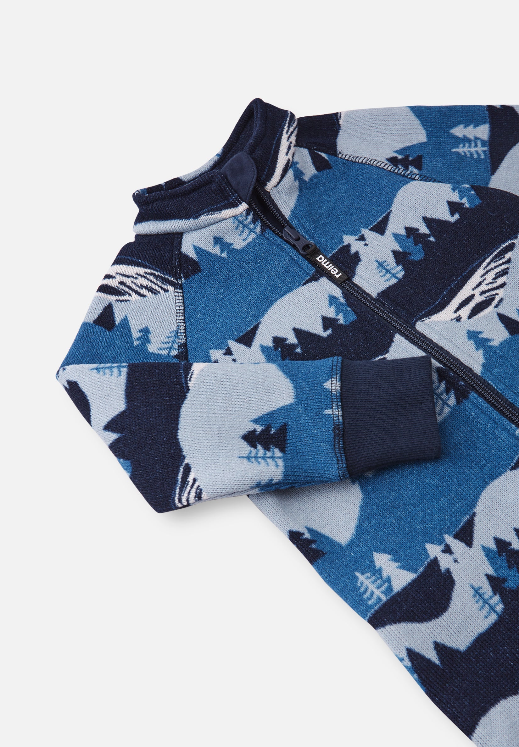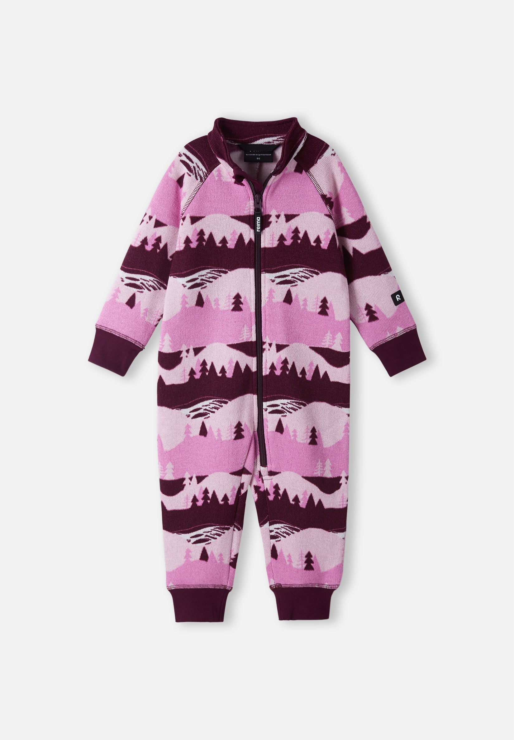 Functional all-in-one for toddlers made from a warm knit fleece. Striking all-over print and long ribbed cuffs. Very cozy and quick-drying.