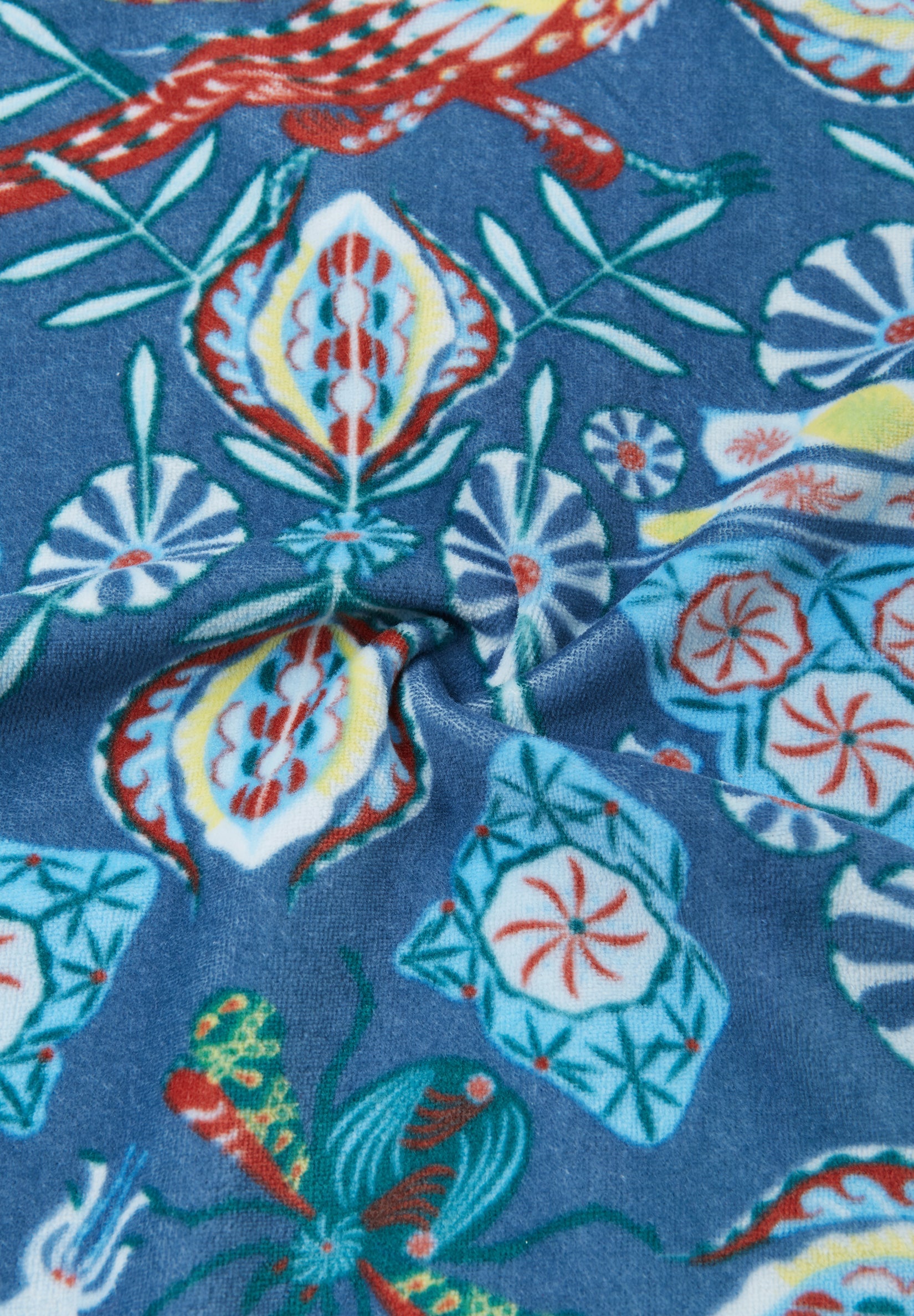 Comfortable velour sweater in a beautiful over-all print. With organic cotton.