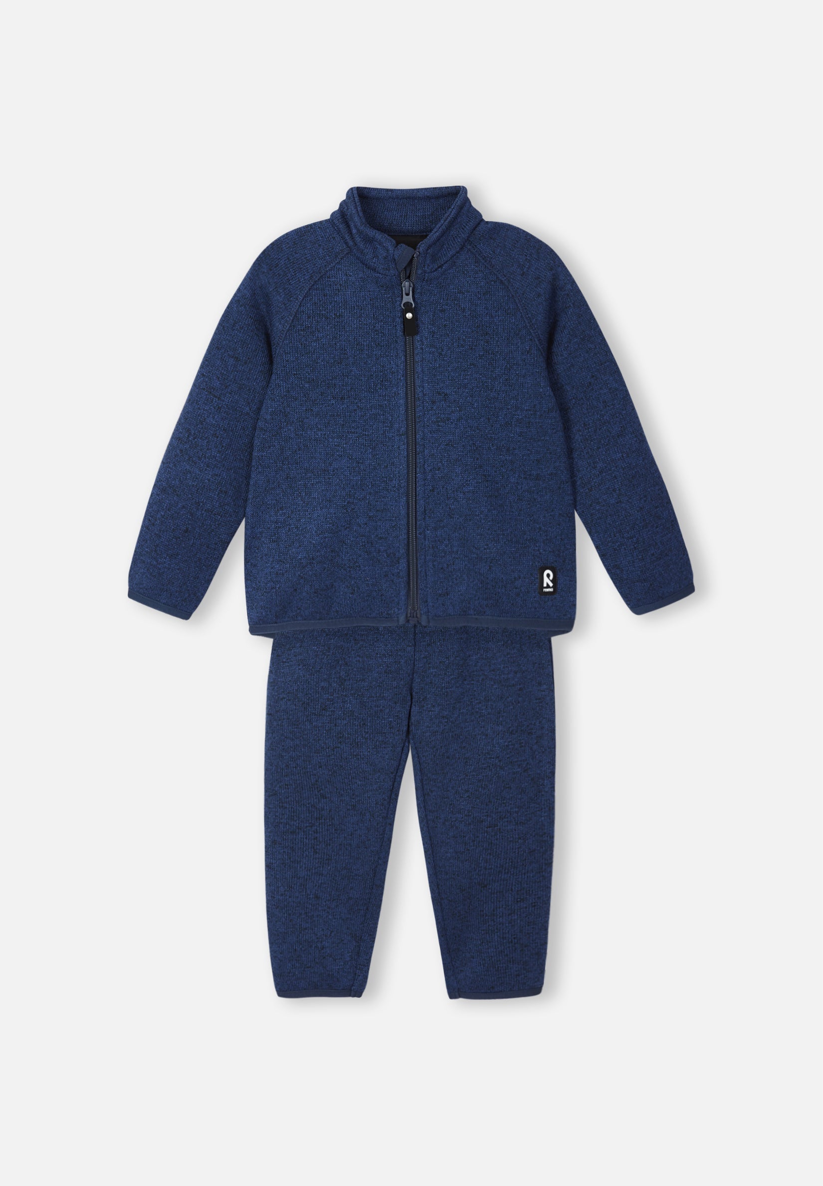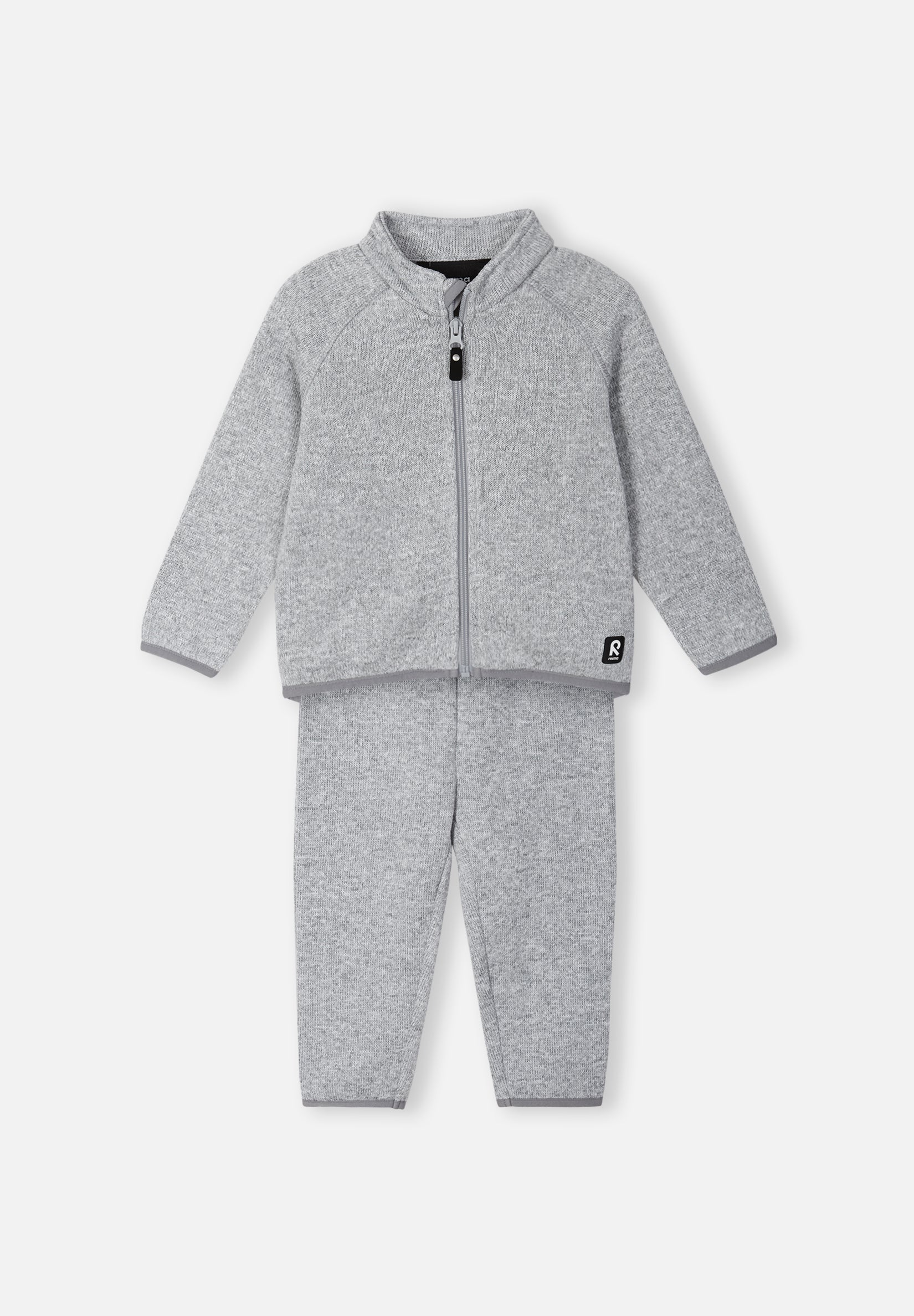 Functional and warm mid-layer set for toddlers in knitted fleece. Looks like a sweater set but has all the benefits of fleece. Very warm and quick-drying. Lightweight style.