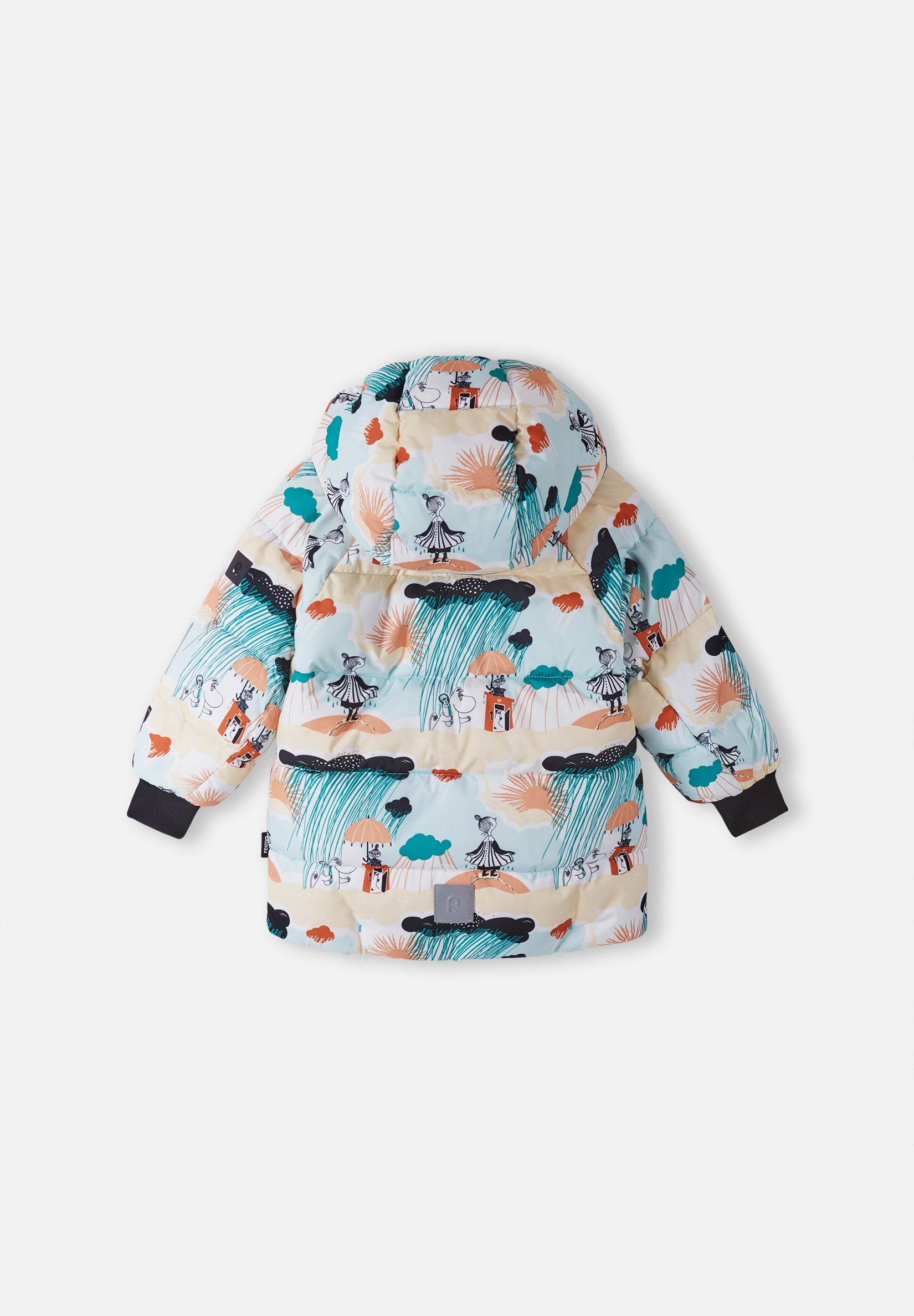 This adorable Moomin winter jacket for toddlers is not only good looking but also practical and sustainable - that's Reima. The main material is highly water and dirt repellent. The warmly insulated jacket has a fluffy down-like filling. All the fabrics contain recycled materials.
